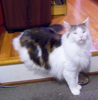 I knocked my food dish off the step so that I could relax my back paws. Please note - I stayed like this for a good 15 mins because it was such a FIERCE pose!